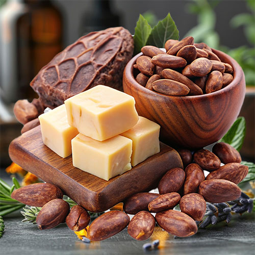 Cocoa Butter is a rich, nourishing emollient that deeply moisturizes and improves skin elasticity. It is particularly effective in soothing dry, flaky skin and promoting a smooth, soft texture. In hair care, Cocoa Butter helps to repair and strengthen damaged hair, leaving it soft and shiny.