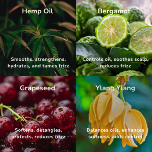 Indulge in the aromatic blend of our essential oils. Bergamot reduces frizz and adds shine, Ylang Ylang smooths and conditions hair, Lavender calms irritation, Black Pepper stimulates circulation, and Cypress strengthens hair. This blend harmonizes and nurtures both your hair and senses.